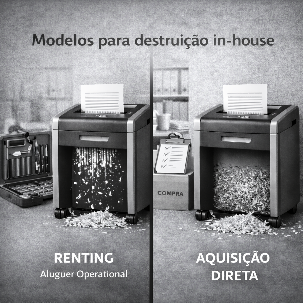 A aquisição direta de destruidoras pode fazer sentido em determinados contextos. O aluguer operacional surge como uma alternativa válida noutros cenários, permitindo custos previsíveis, manutenção incluída e rápida implementação.